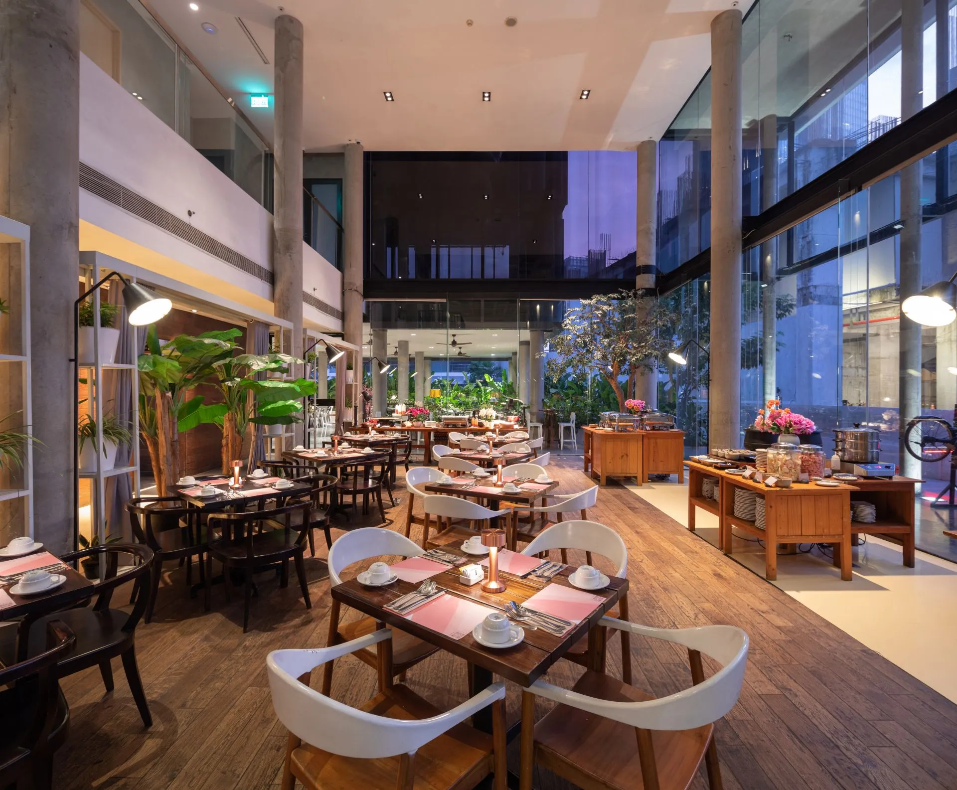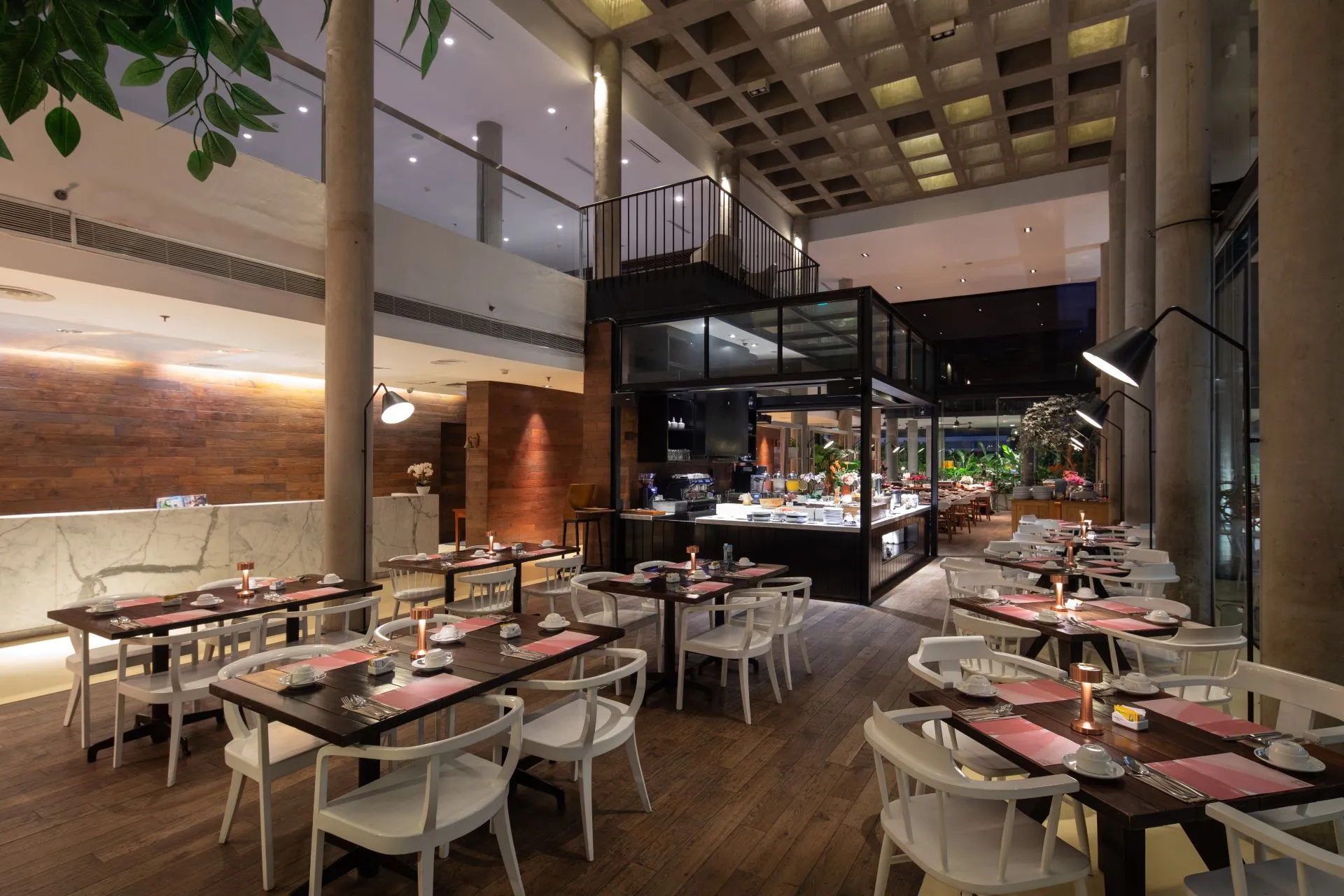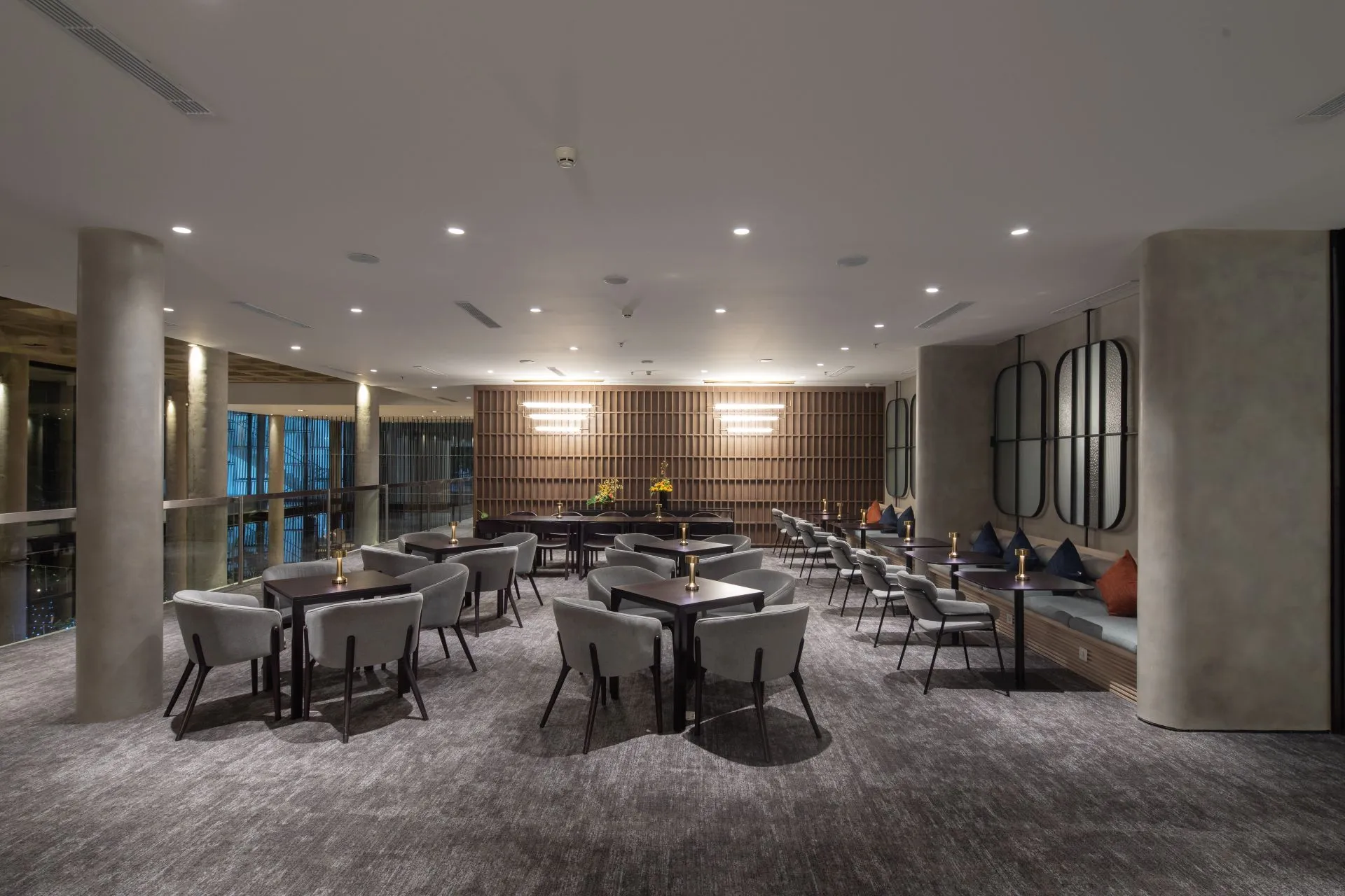 With a blend of modern design, warm lighting, and plush seating, it's the perfect place to relax, socialize, or enjoy a casual dining experience.
