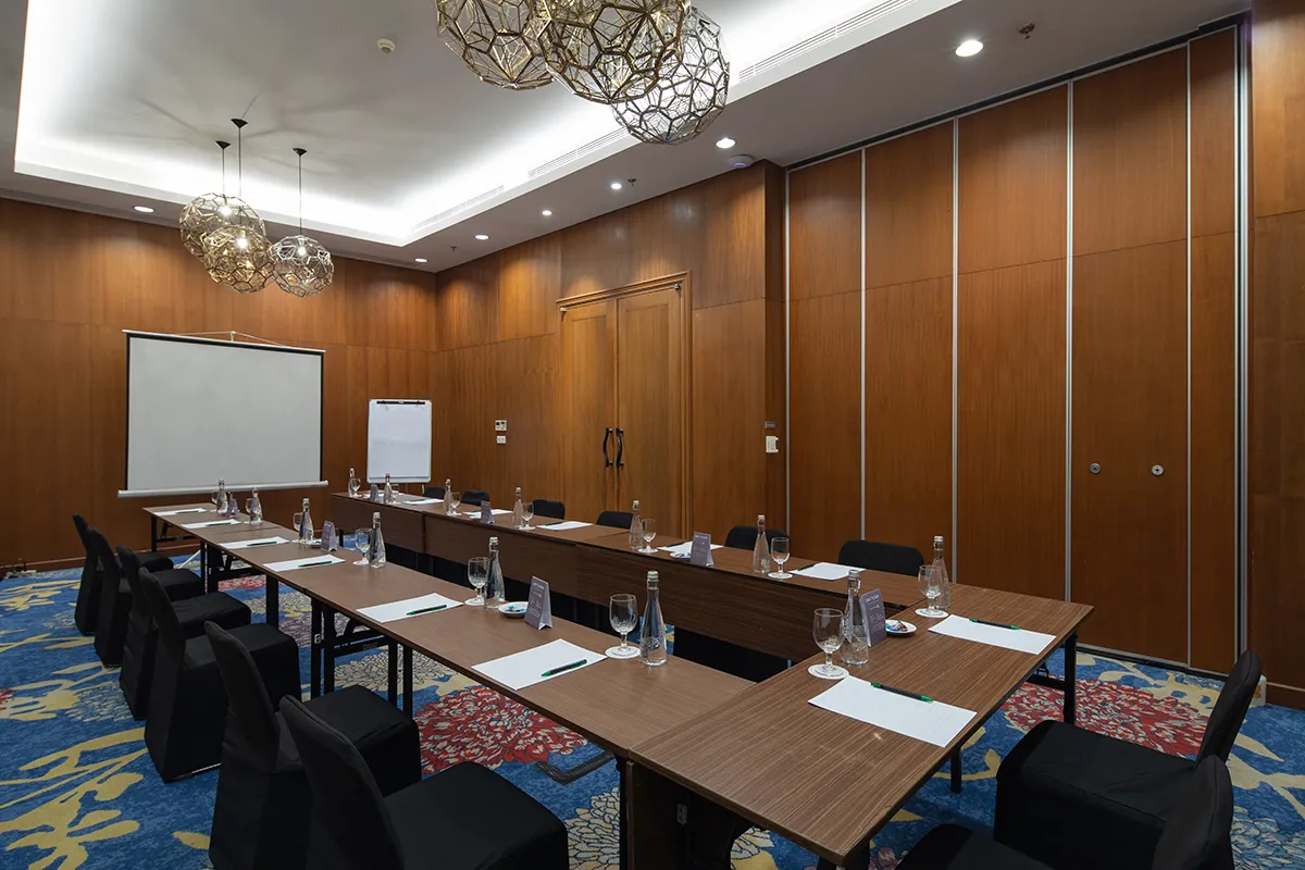 The Ballroom is meticulously designed with modern aesthetics, featuring state-of-the-art audiovisual equipment, customizable lighting, and premium furnishings to create the perfect ambiance for any event. Whether you're planning a corporate conference, a grand wedding, or an intimate social gathering, the Bond Ballroom offers the ideal setting, complemented by our dedicated event planning team to ensure every detail is flawlessly executed.